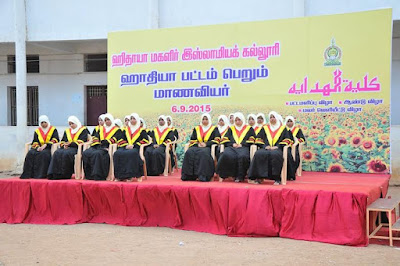 இந்தக் கல்லூரியில் மாணவிகள் தங்களது மூன்று வருட ஆலிமா பட்டப்படிப்பை பூர்த்திசெய்துள்ள நிலையில், கடந்த செப்டம்பர் 6, 2015 (ஞாயிறு) அன்று இந்த மூன்று வருட பட்டப்படிப்பை வெற்றிகரமாக முடித்துள்ள 20 மாணவிகளுக்கு "ஹாதியா" என்ற பட்டம் வழங்கும் நிகழ்வு சமூகத்தின் தலைசிறந்த உலமாக்கள், அறிஞர்கள், இயக்கத் தலைவர்கள், மற்றும் சமூகப் பிரமுகர்கள் முன்நிலையில் நடைபெற்றது.