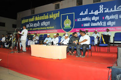 அதனைத்தொடர்ந்து, கல்லூரியின் சிறப்பு மலரை வெளியிட்டு வாழ்த்துரை வழங்கினார் தமிழக அனைத்து இஸ்லாமிய இயக்கங்கள் மற்றும் அரசியல் கட்சிகளின் கூட்டமைப்பின் ஒருங்கிணைப்பாளர், ஹாஜி. AK. முஹம்மது ஹனீஃபா அவர்கள்.