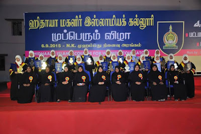 இந்நிகழ்ச்சி, இந்தக் கல்லூரியில் பயின்ற ஆலிமாக்களுக்கு முதலாம் பட்டமளிப்பு விழா, கல்லூரி ஆண்டு விழா, மற்றும் கல்லூரியின் மலர் வெளியீட்டு விழா என “முப்பெரும் விழாவாக” நடைபெற்றது.